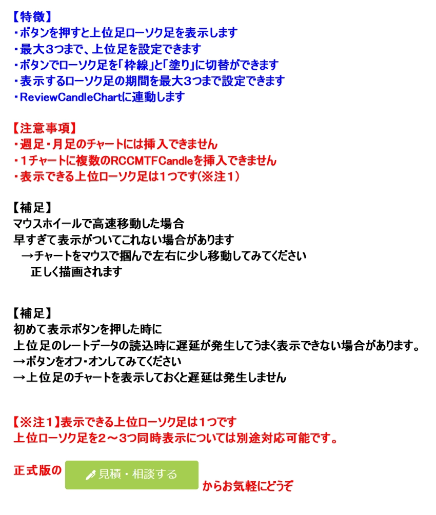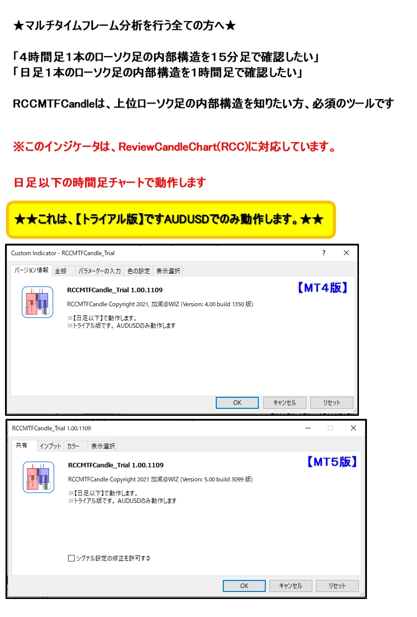 【RCCMTFCandleトライアル版】(MTF)マルチタイムフレーム・キャンドル MT4・MT5 RCC対応