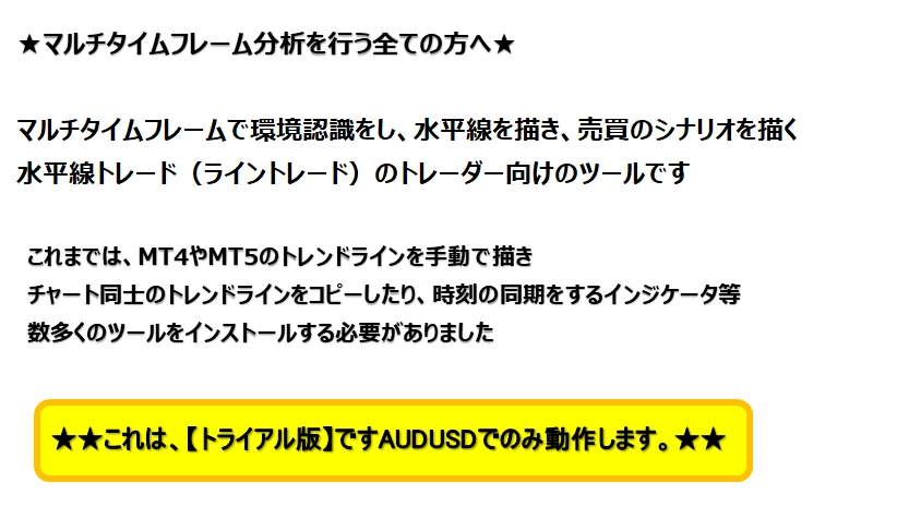 【Lトライアル版】水平線+マルチタイムフレーム分析ツール MT4・MT5 RCC対応