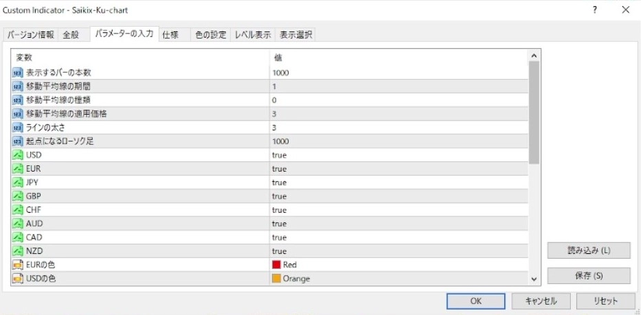 ・通貨強弱アラートのパラメーター