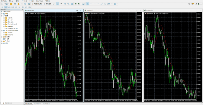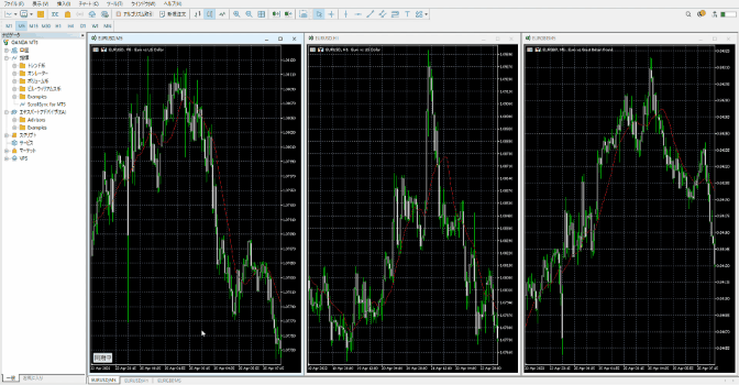 3.基準となるチャートの時間を動かすとそれに応じて他のチャートが同期されます。
