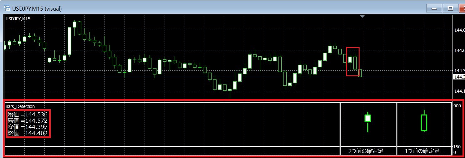 を自動描画するローソク足検出ツール「Bars_Detection.ex4」がセットで梱包されています。