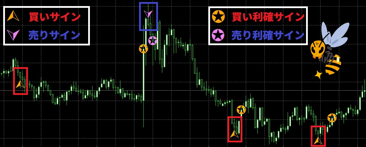 ピンバーは相場の転換シグナルを発する指標となることが分かりました。この転換シグナルを利用して開発したインジケーターが【嬢黄蜂】になります。