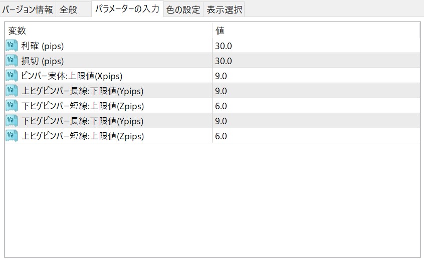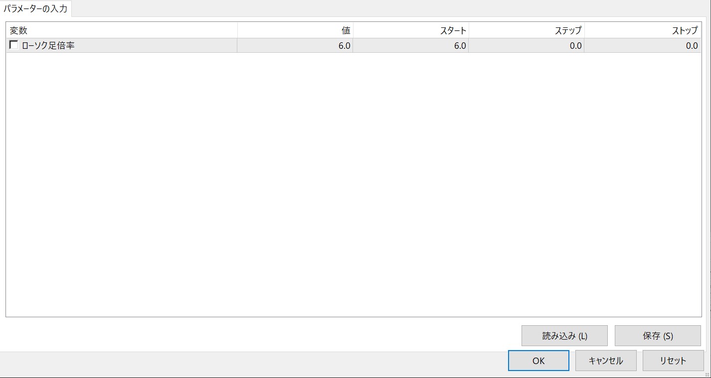 パラメータはローソク足の大きさの倍率を変更できます。