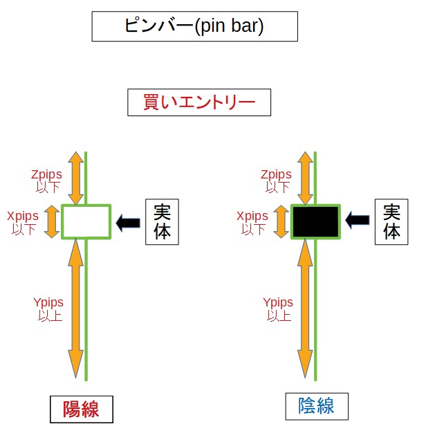 上記3つの条件を満たすピンバーを図にすると以下のようになります。