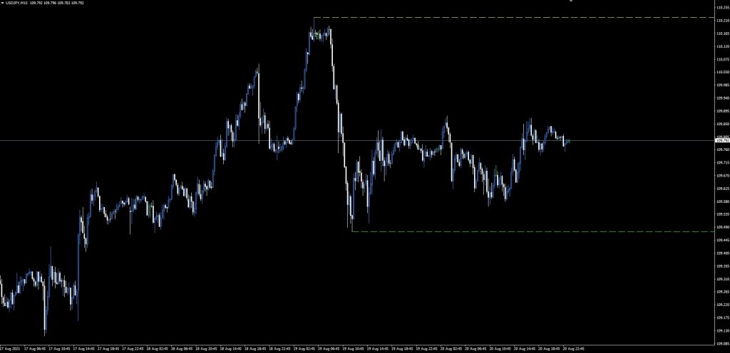 今回のインジケーターは 一定期間内の最高値と最安値の価格に 自動でラインを引く仕様です。 最高値や最安値のラインは 将来的にも意識されやすい傾向にあり 注目している方も多いと思いますが 自身で設定した範囲内での 最高値、最安値を把握したい方も 多いのではないでしょうか? 今回のインジケーターでは ご自身の裁量に合わせて 範囲の設定と最高値、最安値を算出し ラインを自動で引いてくれるので ご自身の持つ裁量トレードに合わせて 利用することが可能です。 イメージとしては 下記のような図の状態