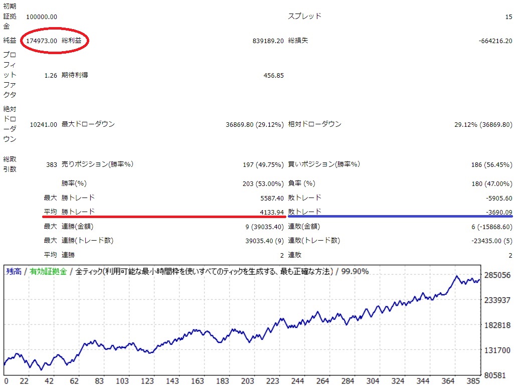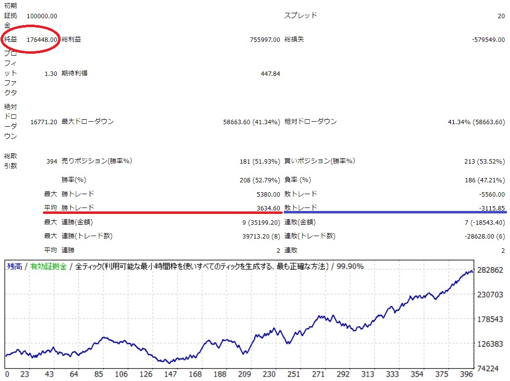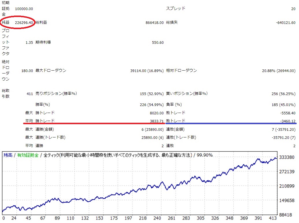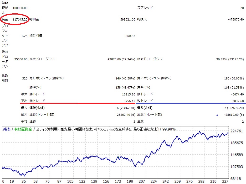 2回に1回は負けるが、損小利大で利益を伸ばすタイプです。