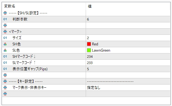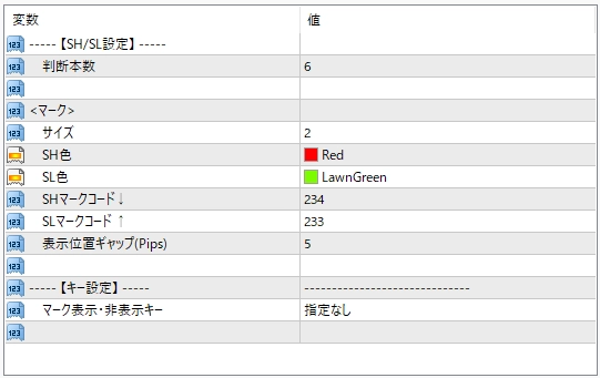・マーク、SH(↓)、SL(↑)のマークを変更可能(コード値を指定)