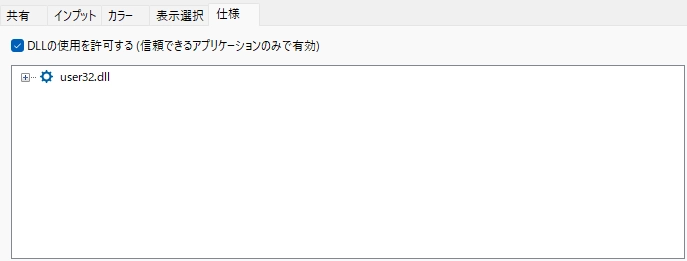 ※「DLLの使用を許可する」にチェックを入れて下さい。