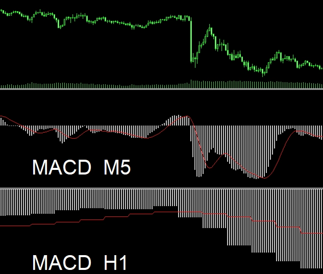 自分が見ているチャート上でより上位の時間足のMACDを表示することができます。