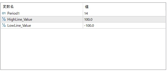 - CCI_Period:CCIの計算期間(デフォルト値:14)