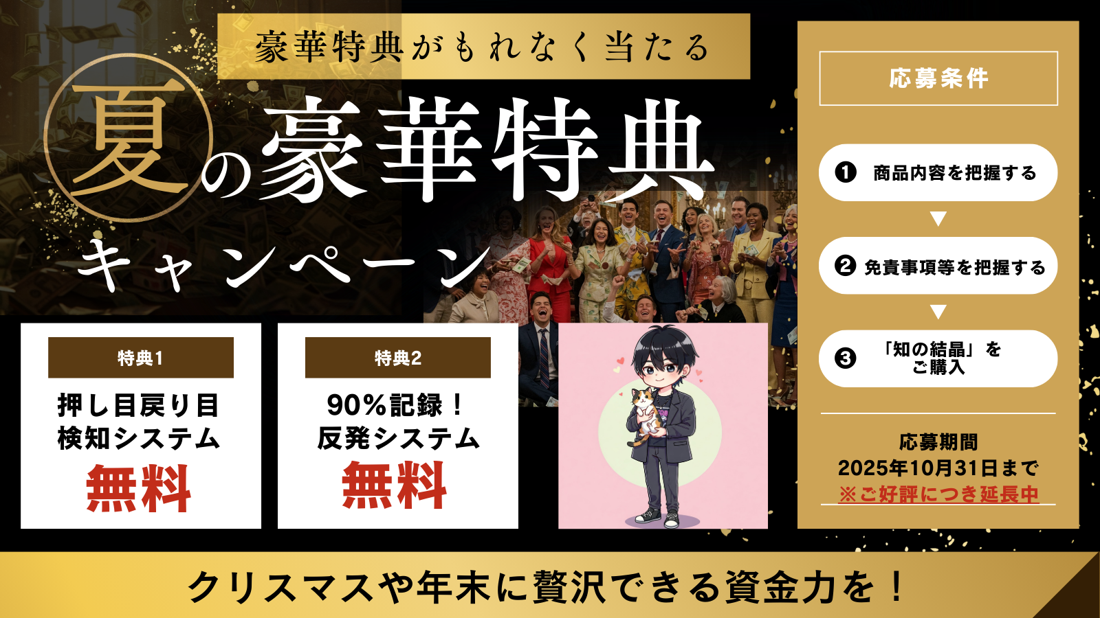 過去に25万円を120万円に増やした実績を持つ、非常に精度の高いシステムです。相場の転換点を見抜き、利益を最大化する強力な武器となります。