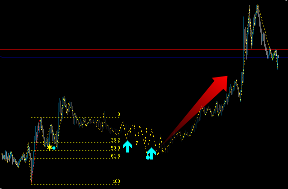 基本は自動でフィボナッチが引かれますが、相場状況に応じて手動でも調整可能。