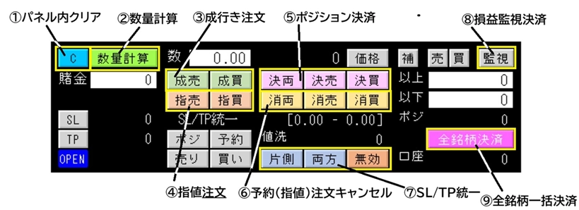 - 総合的な注文・決済機能 ワンクリックで成行注文、予約注文、予約キャンセル、そして保有ポジションの「一括決済」や「全銘柄一括決済」が可能です。 特にMT5版では、非同期注文により超高速での決済処理と予約キャンセルを実現し、ストレスフリーなトレード環境を提供します 。