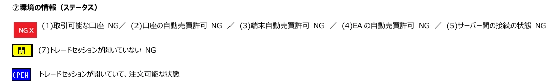 ・MetaTrader 5または、MetaTrader 4のバーションアップによる仕様変更での動作異常は可能な範囲で対応させて頂きますが保証は致しかねます。