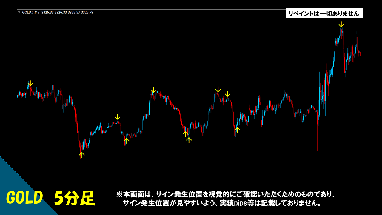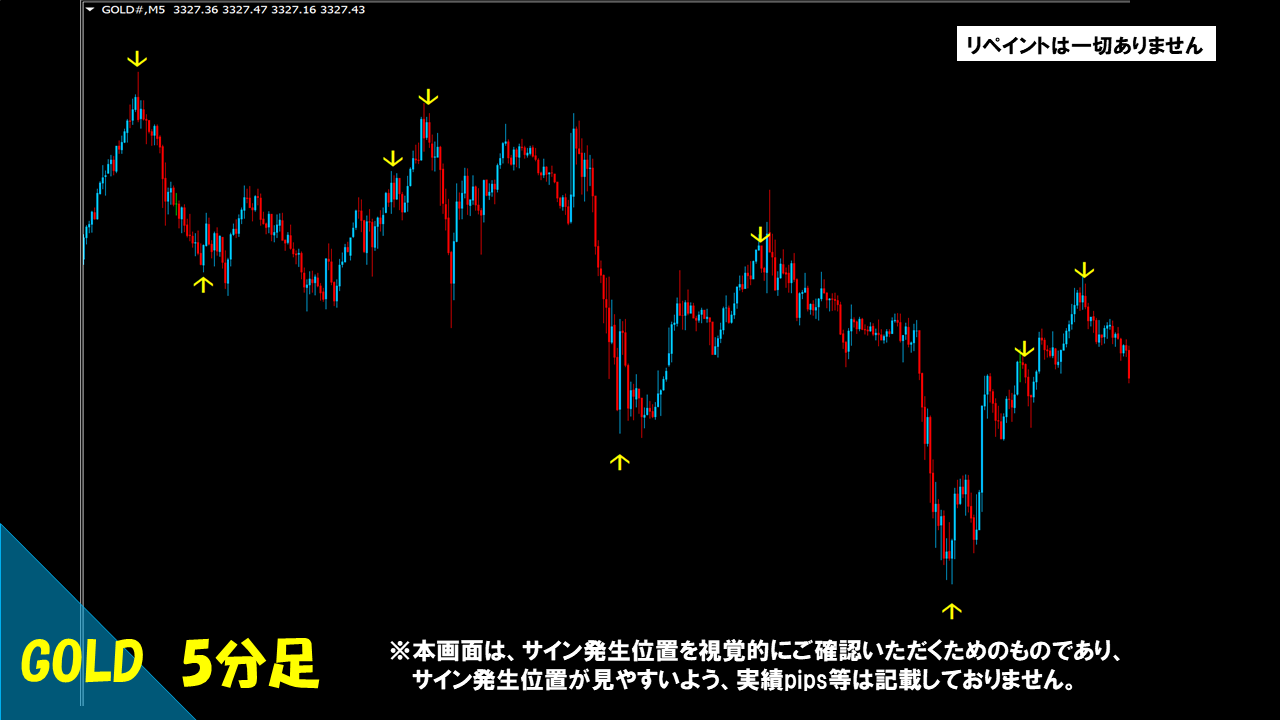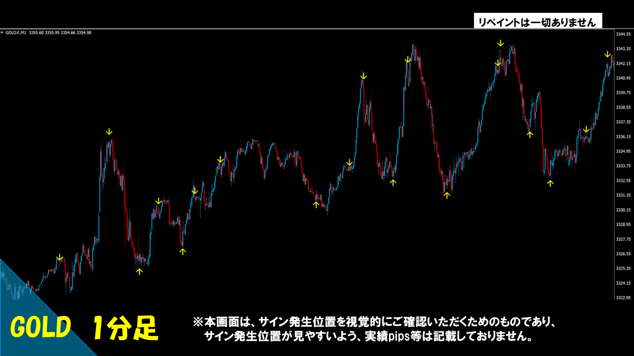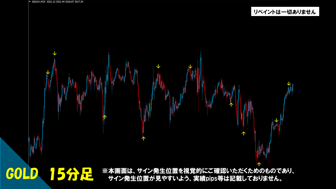 → 完全ノーリペイントです。ローソク足確定によりサインが出る仕様となっています。