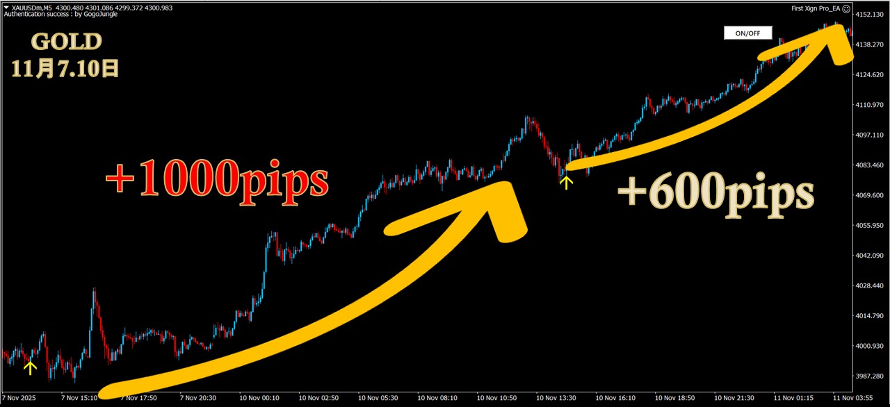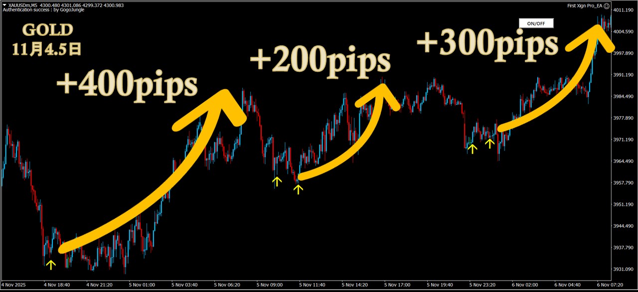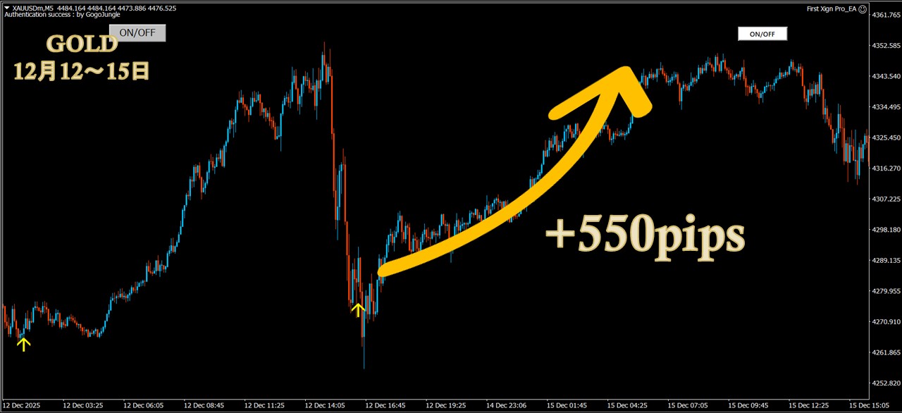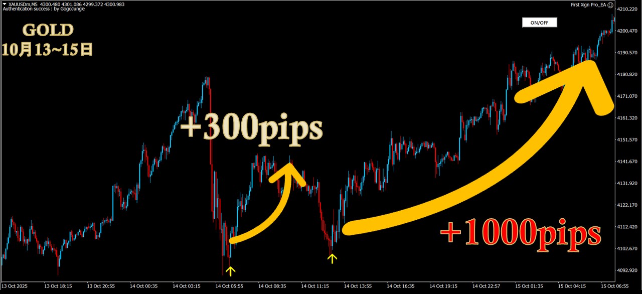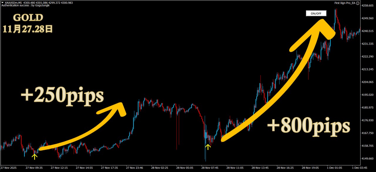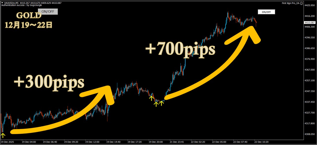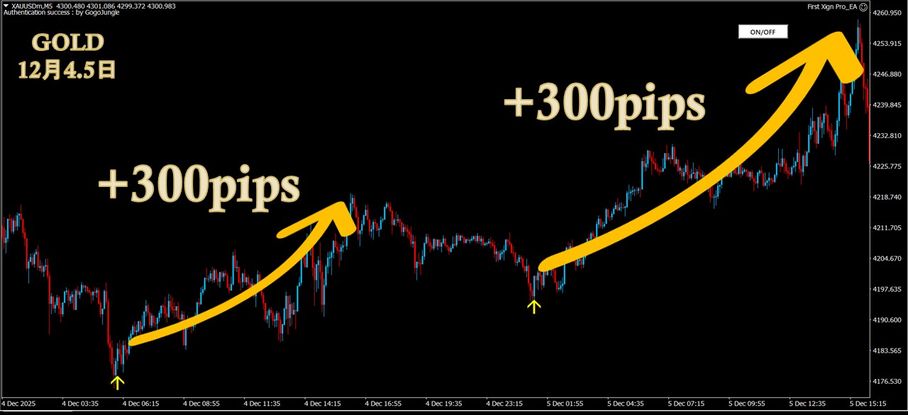 ・5分足だけでもGOLD1000pips超・GBPJPY 300pips超のスイング実績多数