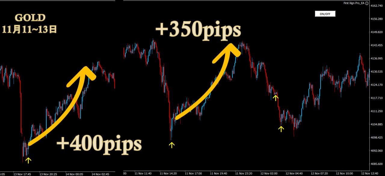 この『First Xign Pro』は大口投資家が狙うポイントをベースにサインが出るように設計しています。
