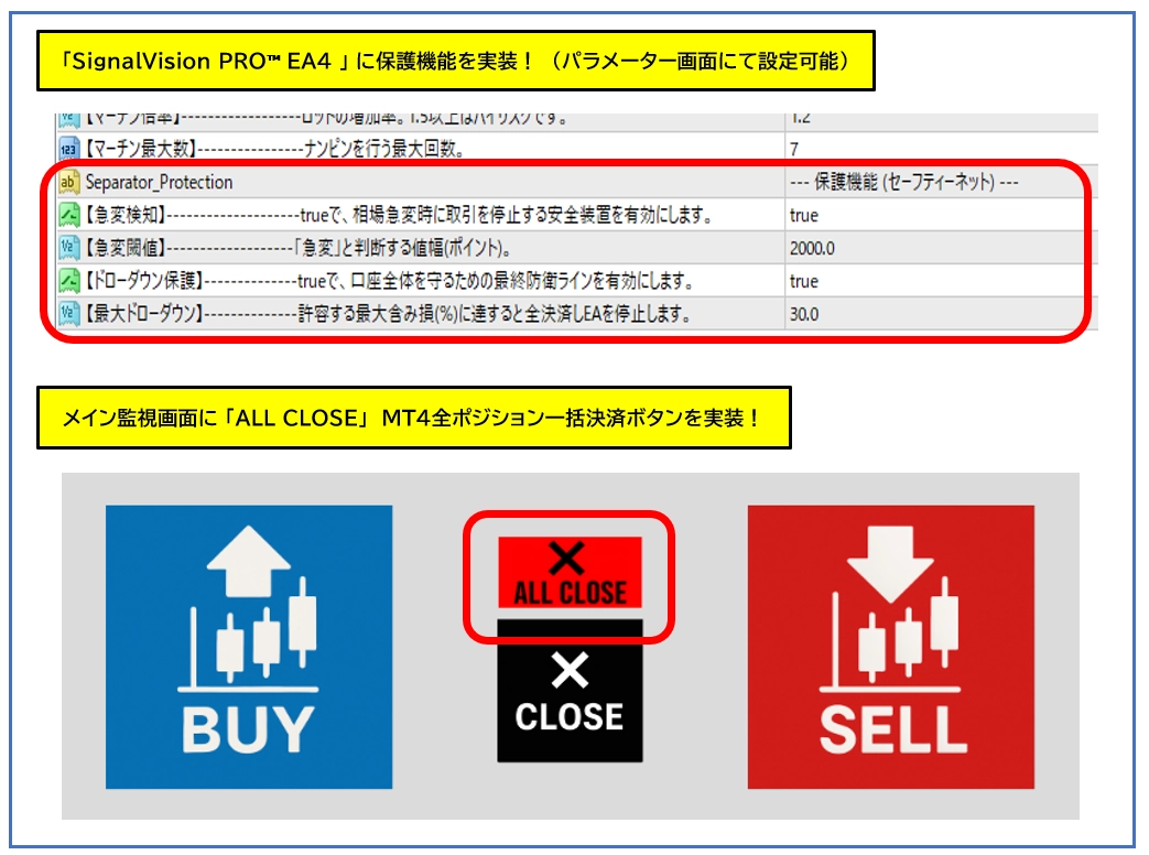 また、SignalVision PRO™と運営者様の半自動決済EA(半裁量EA)を