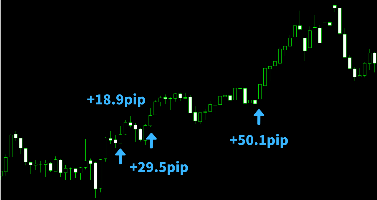 ボラティリティが大きいと一撃で50pip以上取れる時も!