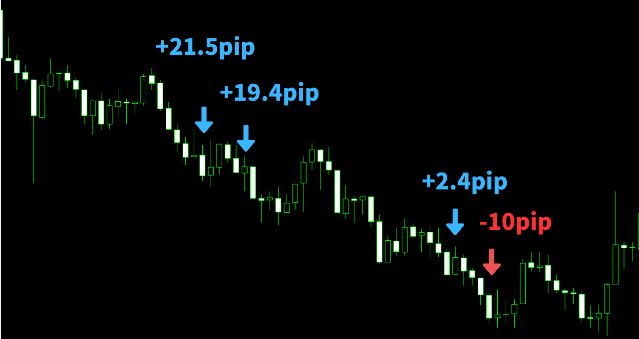 エントリーチャンスが多く、短時間でも効率よくpipを取る事ができます。