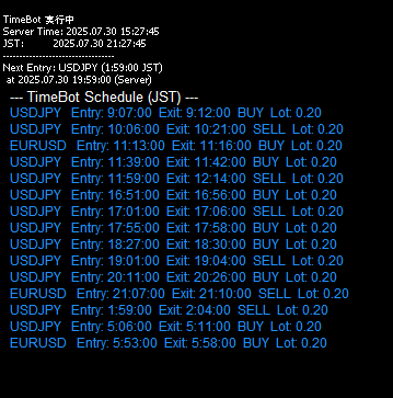 🕰️ EA名:TimeBot_MT5 – マルチペア時間指定型トレード支援ツール