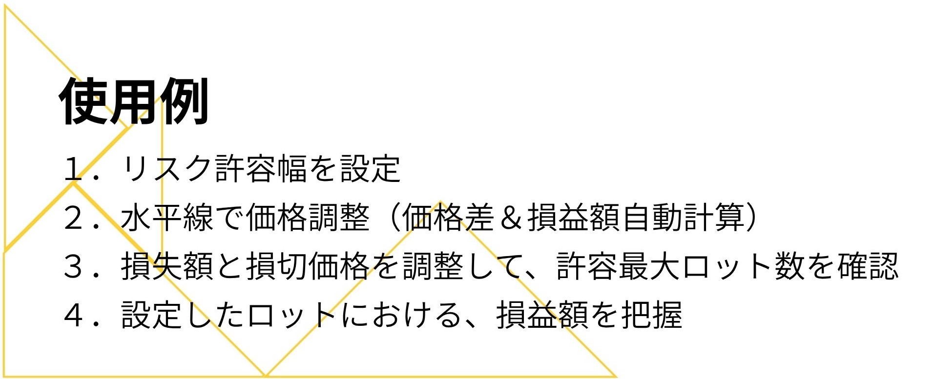 許容損失額を把握したい場合や、許容リスクの中で大きな取引をしたい時に活躍します。