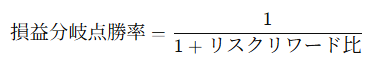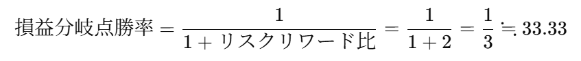 リスクリワード比率1:2のトレードの場合、以下の計算式となります。