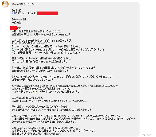 後は今では効率良く勝ちトレーダーになる順序も分かっています。- そういったところを上述の方々に伝えていければと思っています。 - しかしそれ以外の、つまり私に対して何らかのシンパシーを感じなかった人には、