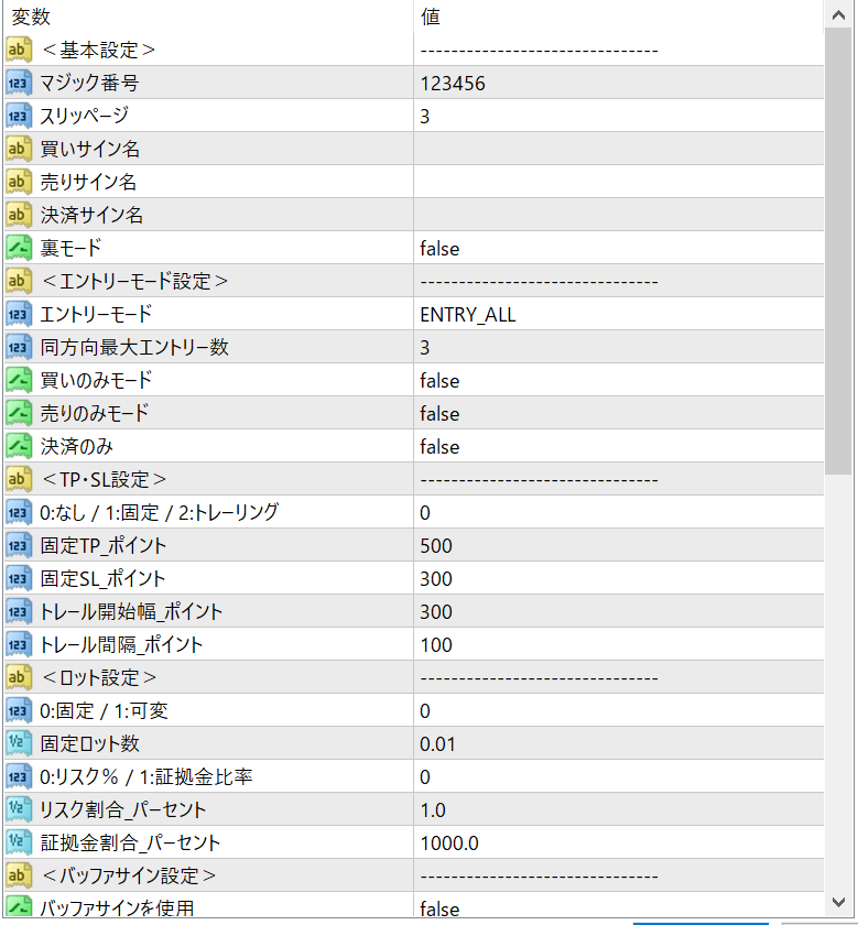 ・サインに対してbuyのみエントリー、決済する機能