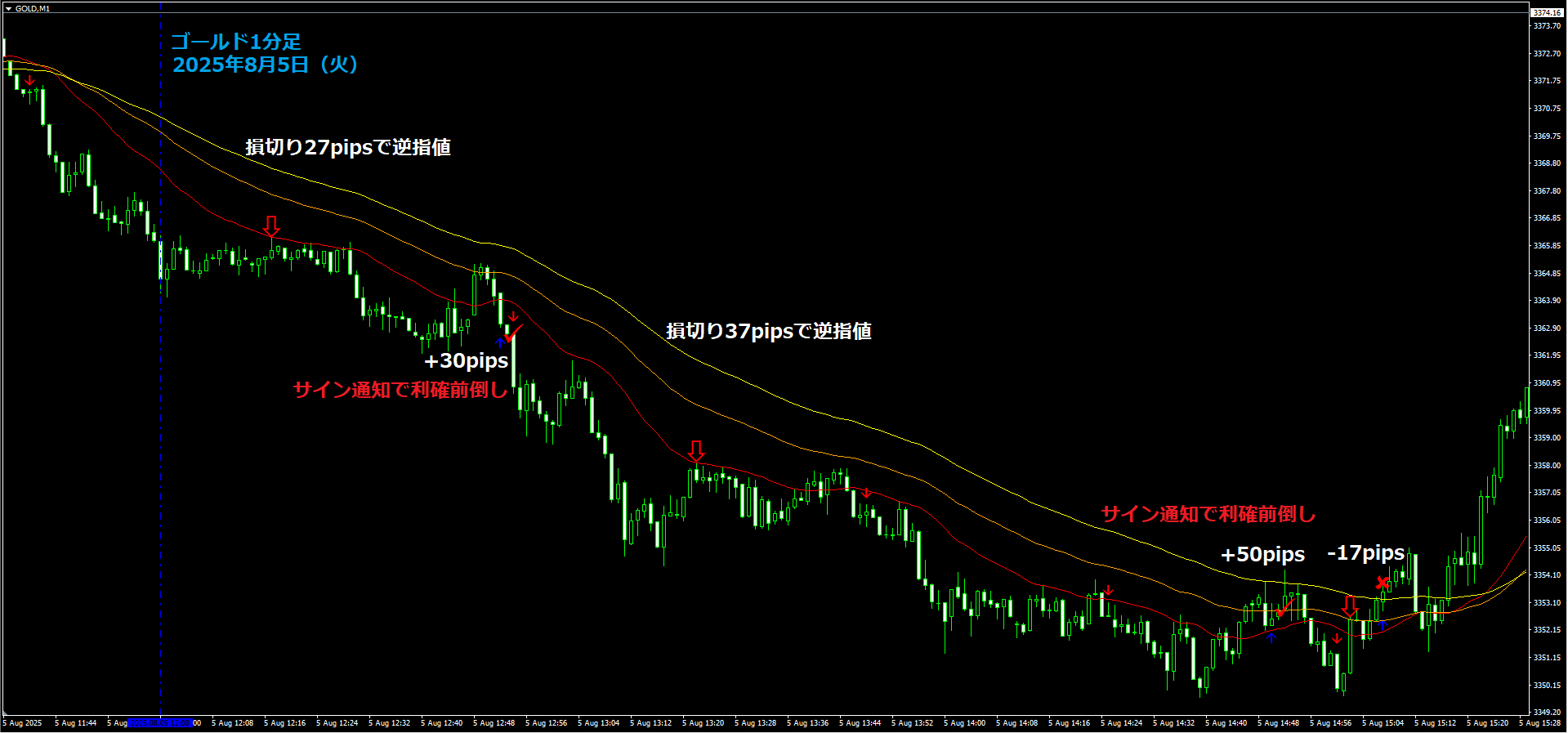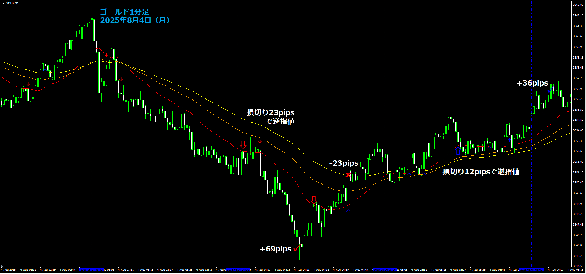 ✅1分足のトレンド判断が明白でトレンド転換にも早く気づける。
