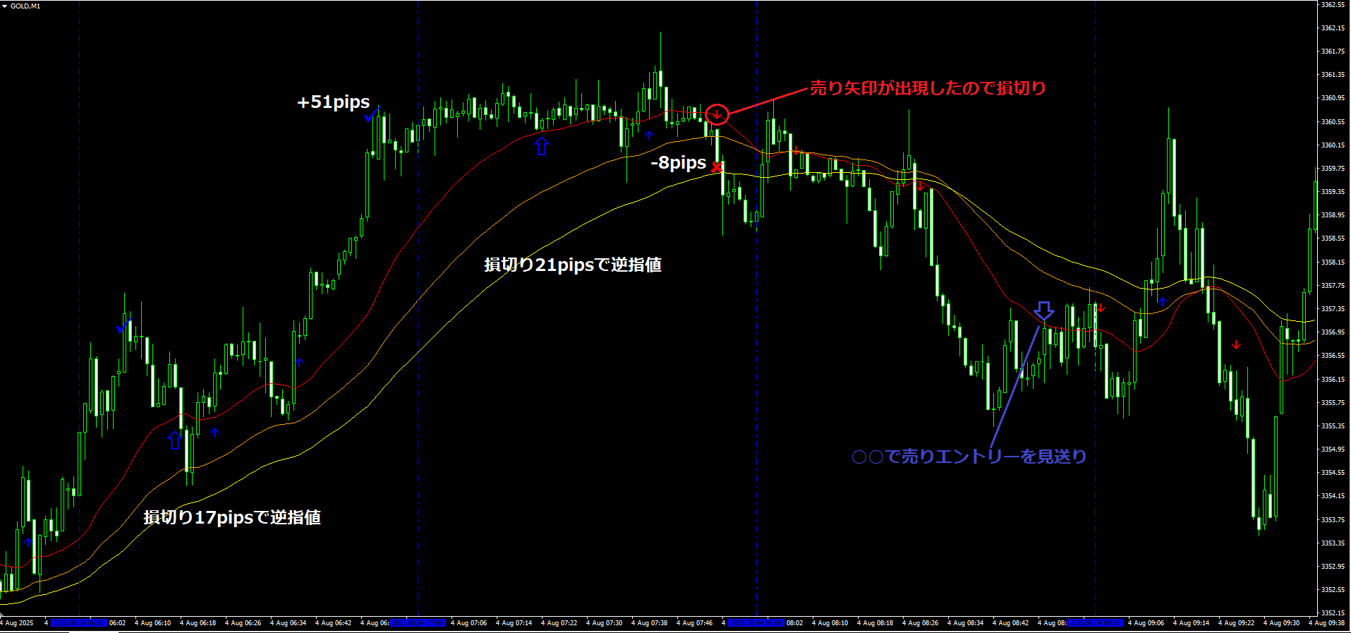 ✅エントリー回数は少なく、ポジション保有時間は長めなので、スプレッド負けし辛く損小利大になりやすい。