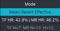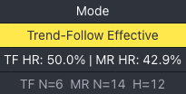 自動的に内部バックテストを行いチャートを分析し、現在の相場環境が順張り、逆張り、あるいは両方のいずれかに適しているのか参考情報を表示します。