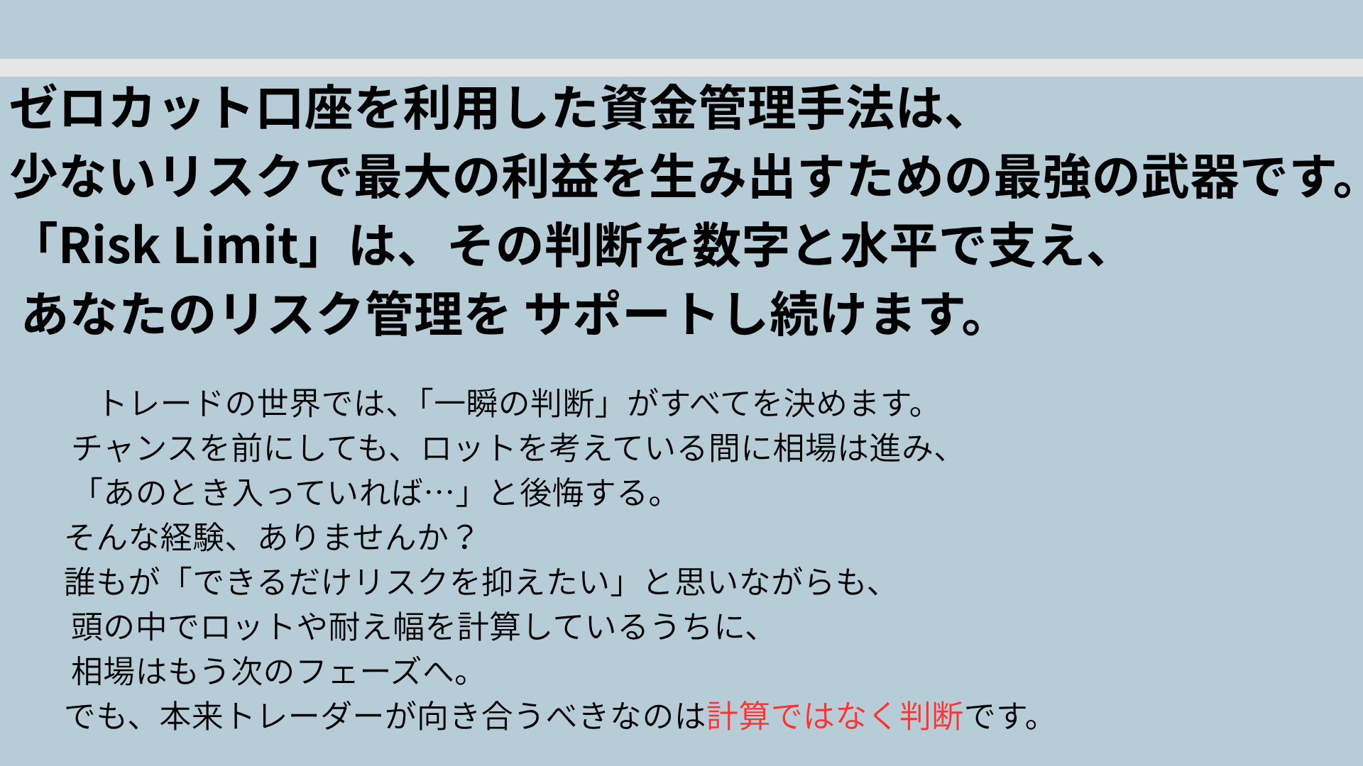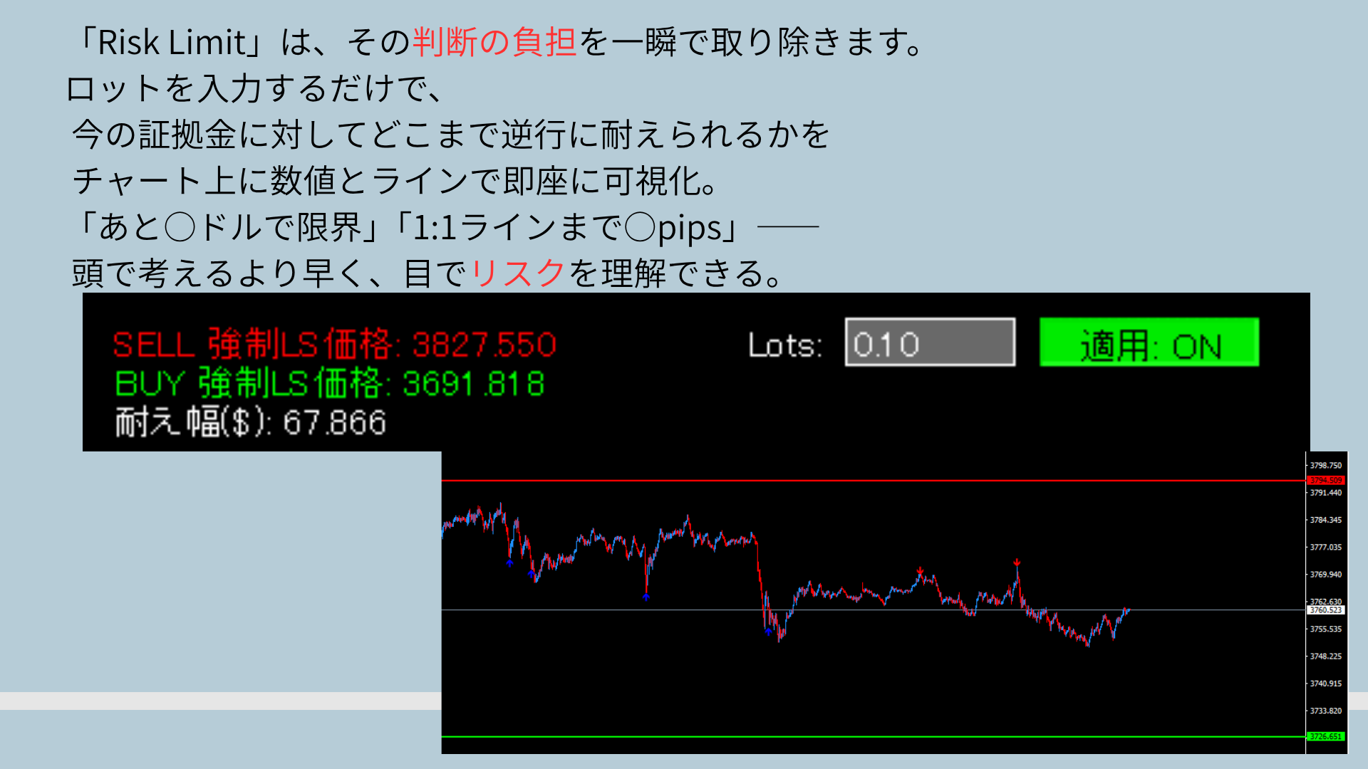 一瞬でリスクを見える化。数字と水平でひと目で分かる。【Risk Limit】
