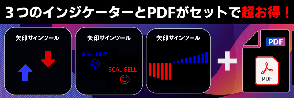 これらのインジケーターを使ったトレード方法、設定方法などを解説したPDF【SCAL-PING FXの秘伝書】の合計4点が含まれているので大変お買い得です!