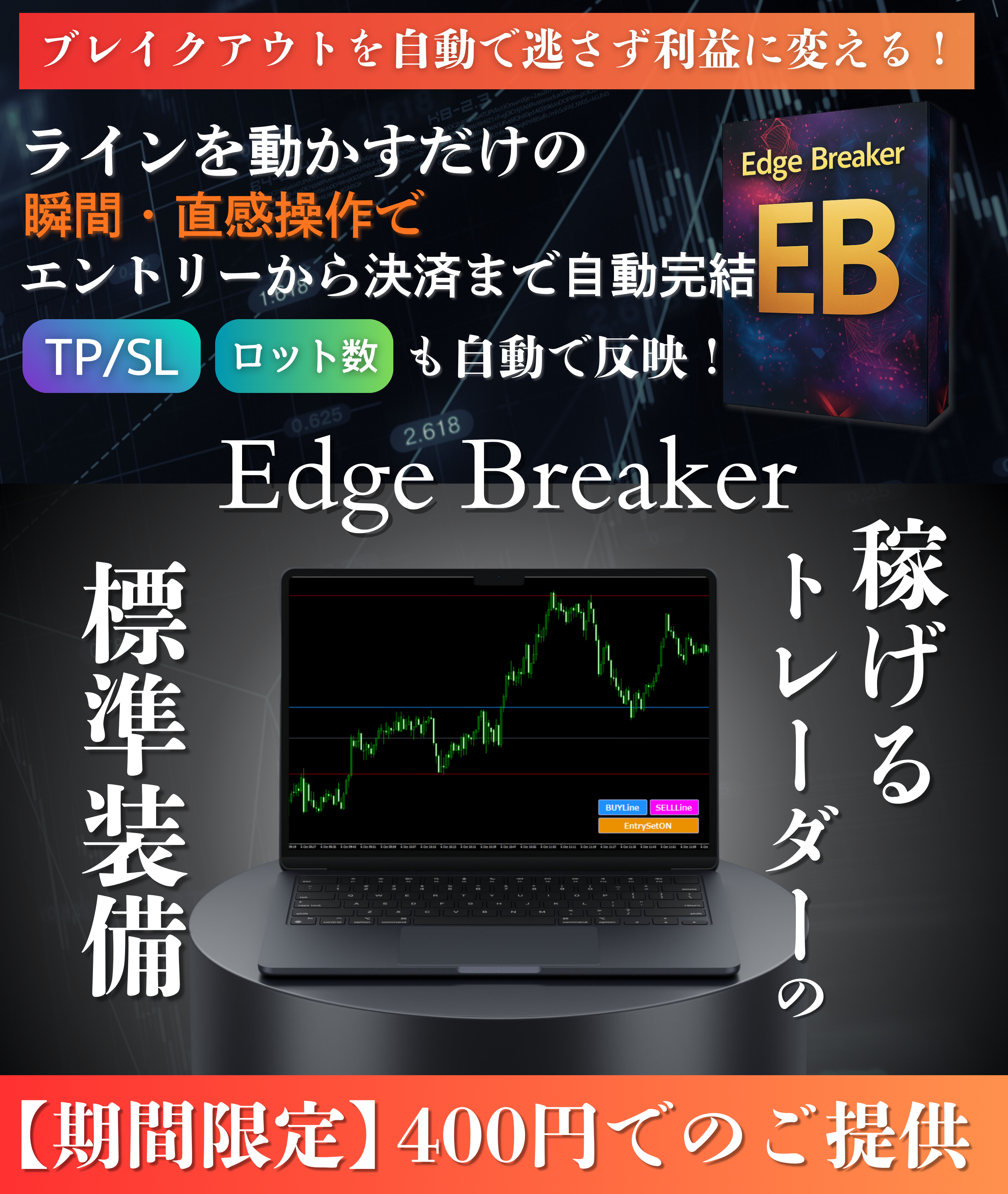 Q. Edge Breakerは初心者でも使えますか? A. はい。設定はシンプルで、パラメーターを一度決めてラインを置くだけで自動売買が始まります。専門知識がなくても直感的に操作できます。