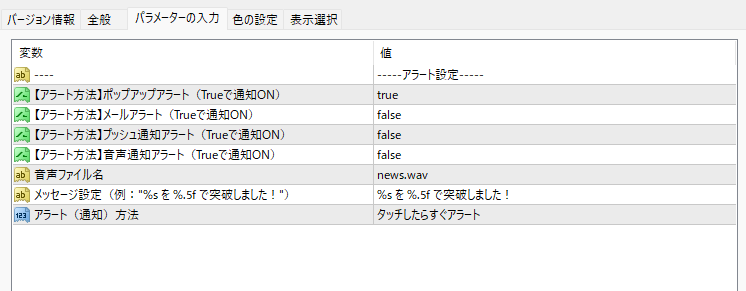 • 即時通知:価格がタッチした瞬間にアラートを出力