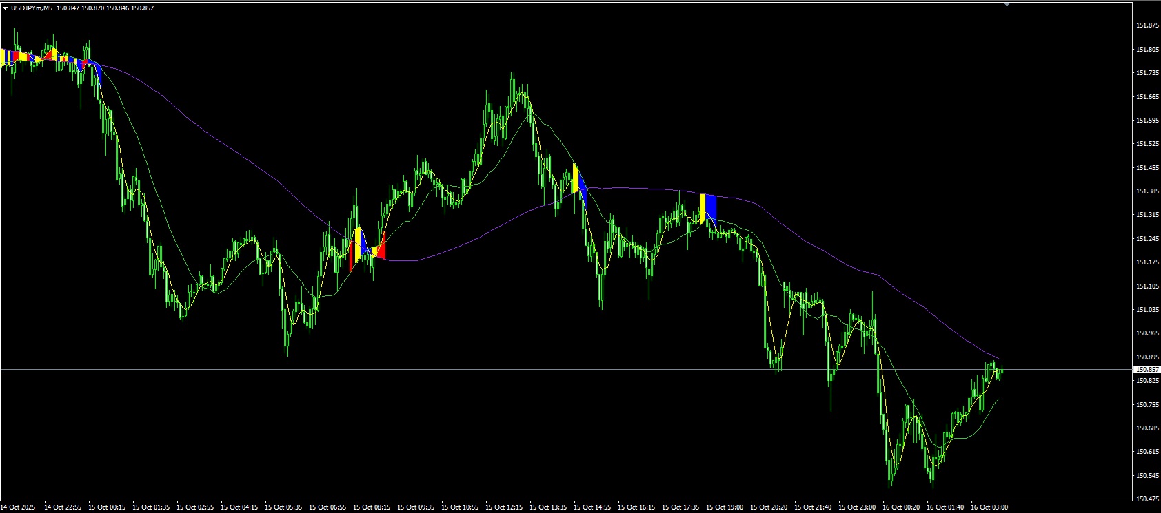 3本の移動平均線が一定範囲に収束した瞬間を“雲”として視覚化するMT4用インジケーターです。