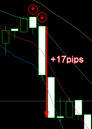 ・下降トレンド中の特定ローソク足パターンによるショート(売り)