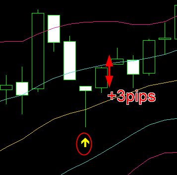 1分足スキャルピング想定で+3pips前後が目安です。(USDJPYの場合)