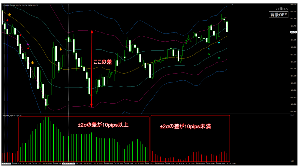 → ボリンジャーバンドが収縮している(値動きが小さい)ときはサインを表示しない