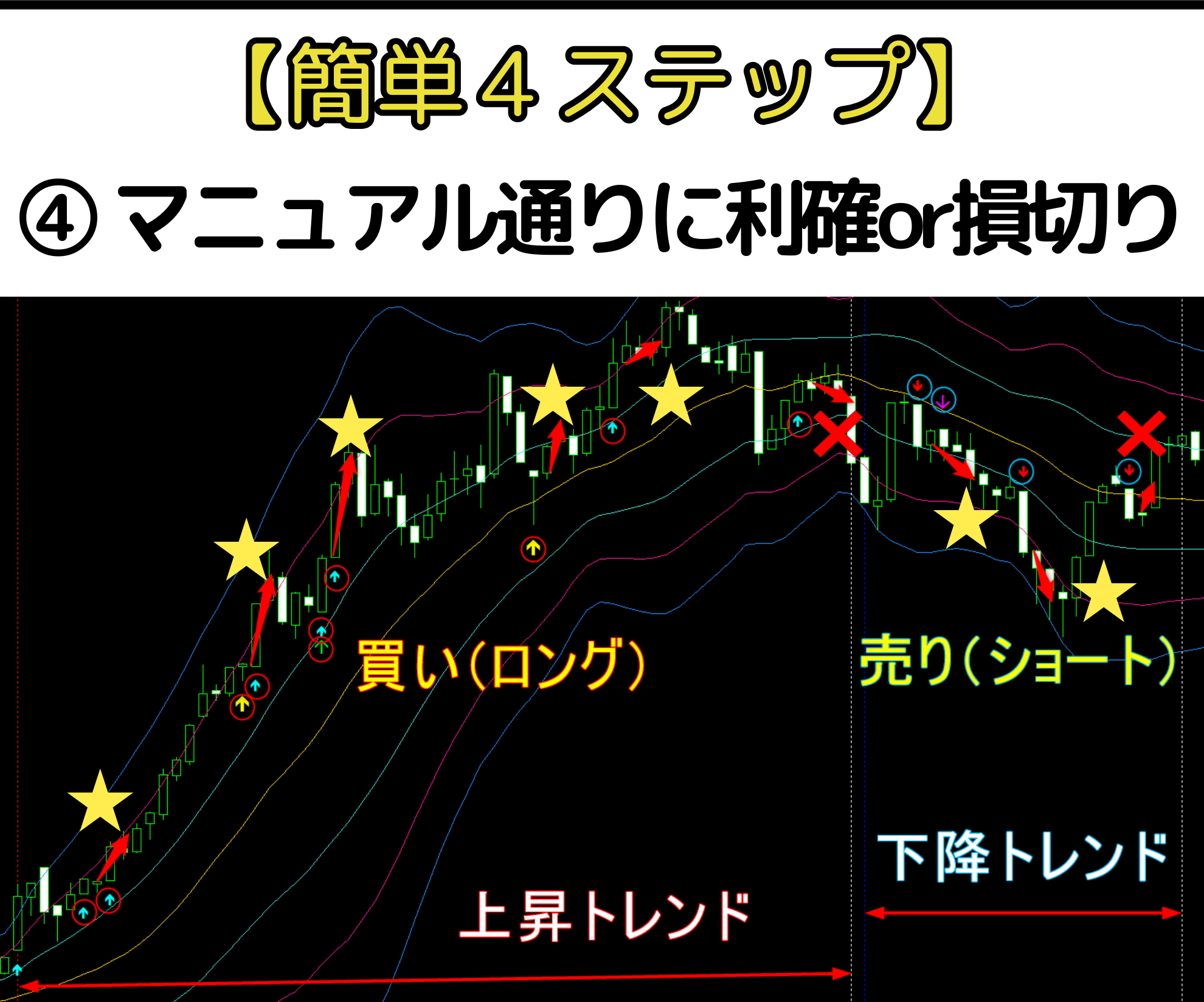 ④ ルール通りに利確・損切を行う → トレンド終了(白線)まで繰り返す
