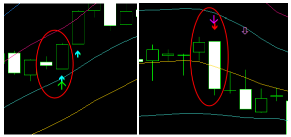 → 足の途中で条件成立でサインが点灯します。足確定前にエントリーしたい方向け。