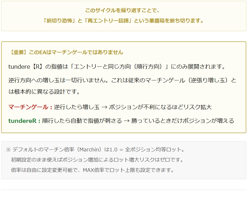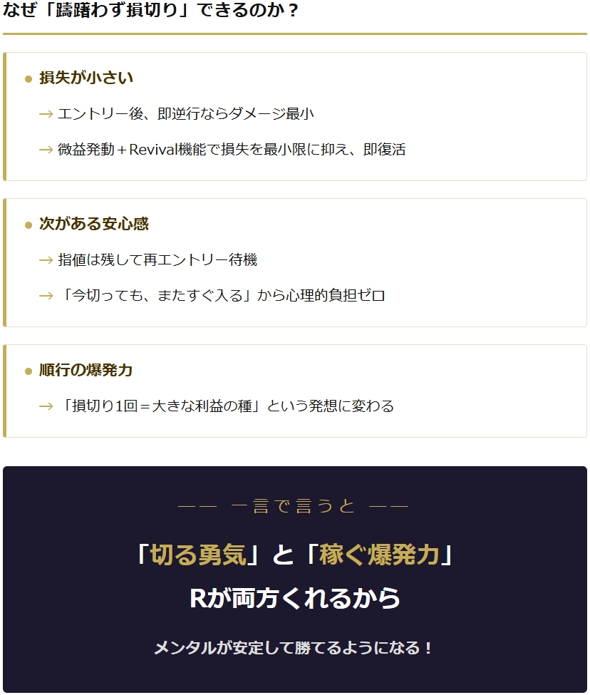 tundereR(R)の最大の利点は、「逆行即切り」 と 「順行爆益」 の完璧なバランス
