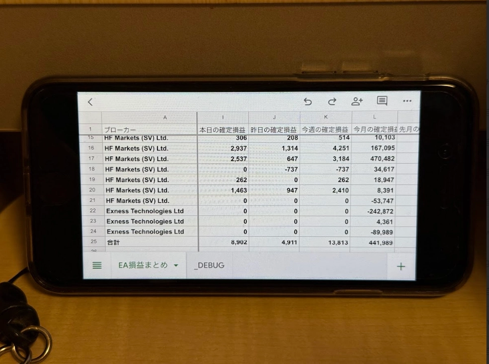 さらに複数のEAを同時稼働すると、毎朝晩スマホのMT4で口座を順に開き、日次損益を電卓で合算する“巡回作業”が発生。