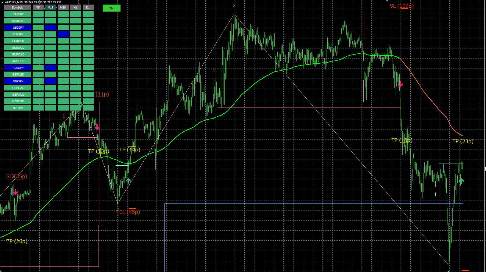 ダブルトップ/ボトム+チャネル+トレンド+自動SL/TP+多通貨スキャナー