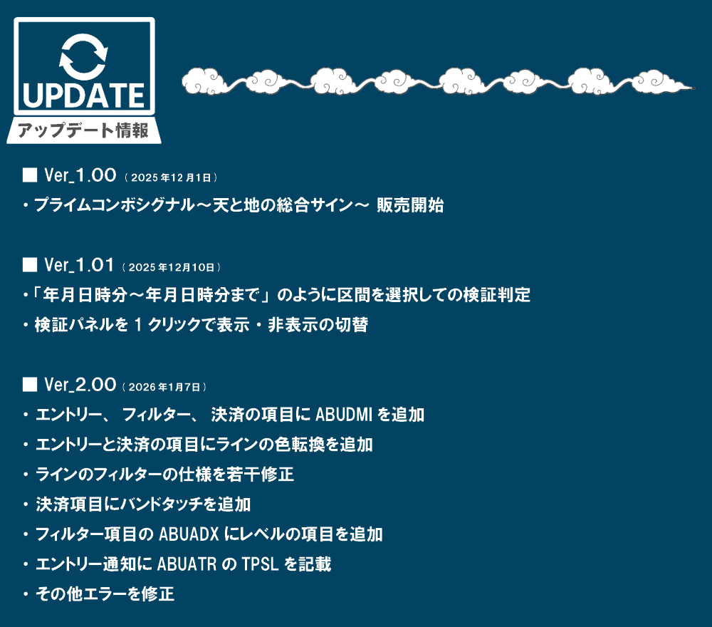 「天と地」シリーズの最終進化形。完全無裁量でサイン点灯と同時にSL・ロットを自動算出。過去の勝敗・勝率・獲得pipsも一目で確認できる、直感で勝負する新時代のシグナルシステム。