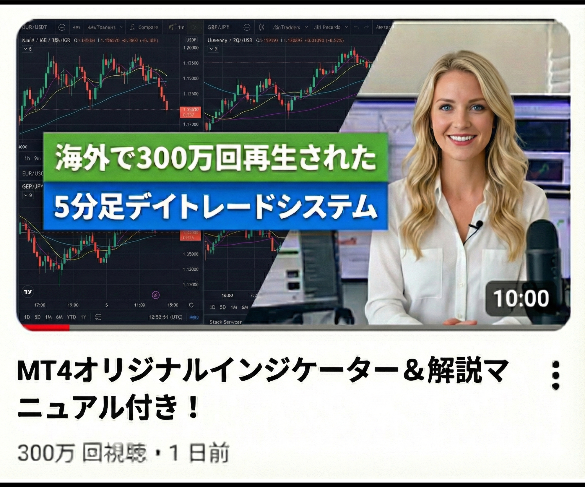登録者43万人超・300万回再生・6.7万いいねを獲得した海外の人気FX系YouTubeチャンネルで公開された手法を、独自にインジケーター化しました。