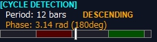 このインジケータでは、位相をラジアン(0〜2π、約0〜6.28)で表示しています。πは約3.14なので:
