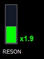 「RESON」と書かれた縦の棒。共振倍率を色で表現しています。