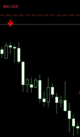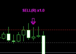 赤の下矢印 + 「SELL x1.8」 → 売りシグナル。x1.8は共振倍率。